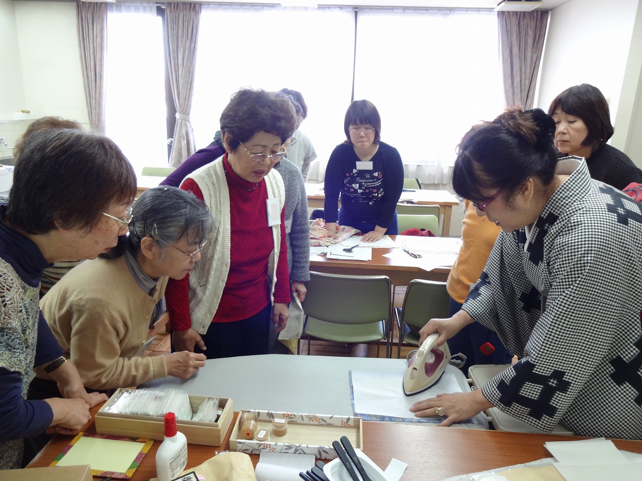 さてさて、勉強をしながらも横目でちらちら・・・先生がご用意くださったたくさんの素敵な和柄の生地が気になります。