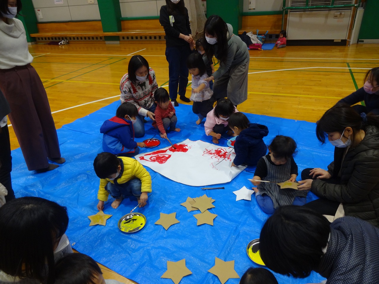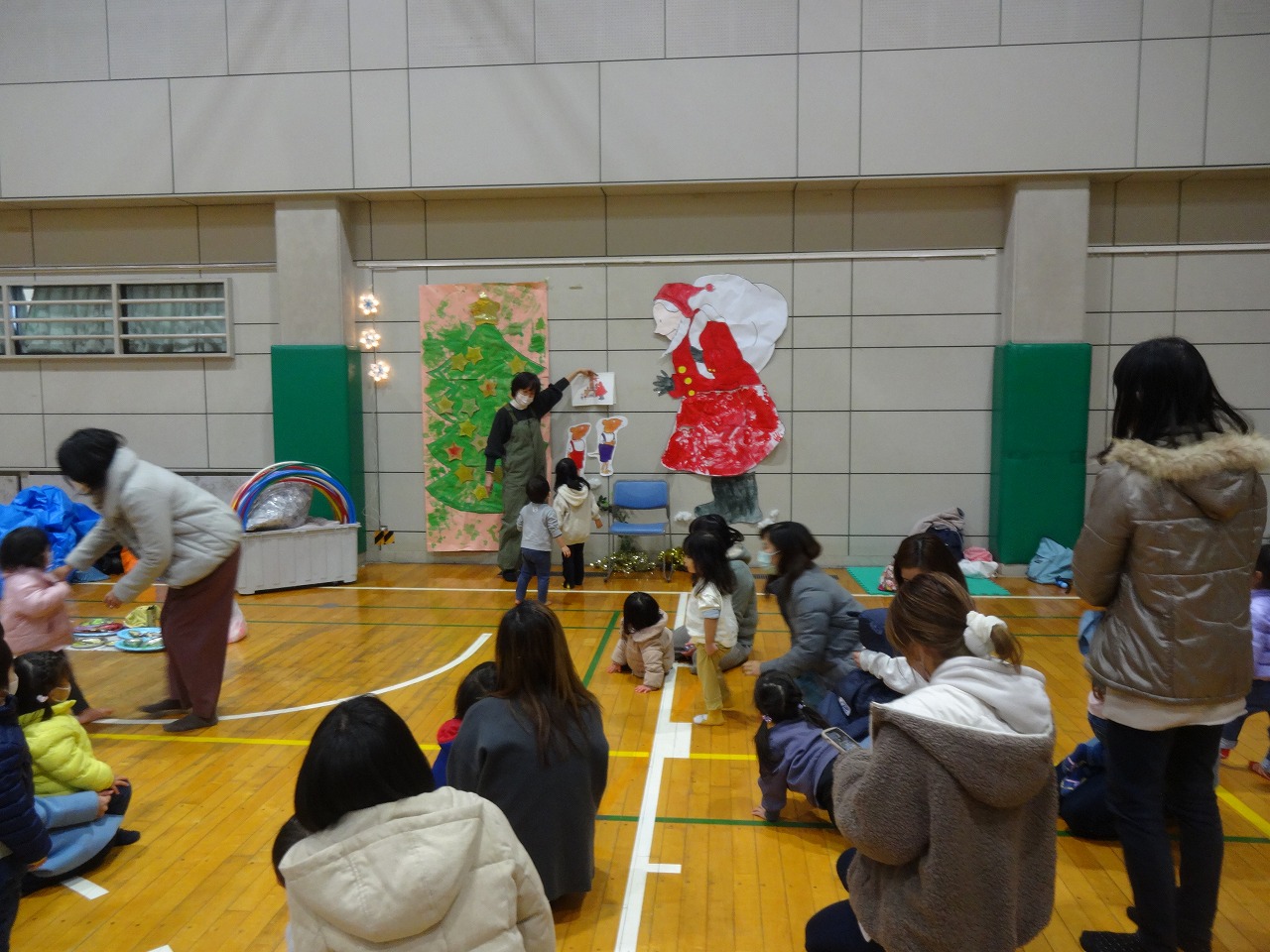 多くの参加親子さんと楽しいXmasイベントを 過ごすことが出来ました。 サンタさんのズボンを色を塗って みんなに上手に完成させてもらいました。 大きなサンタさんが出来上がった時には どこからか鈴の音が・・・ 届いた白い袋にはクリスマスプレゼントが! みんなで頑張った1年。 また来年ものんびりタイムで待っています!