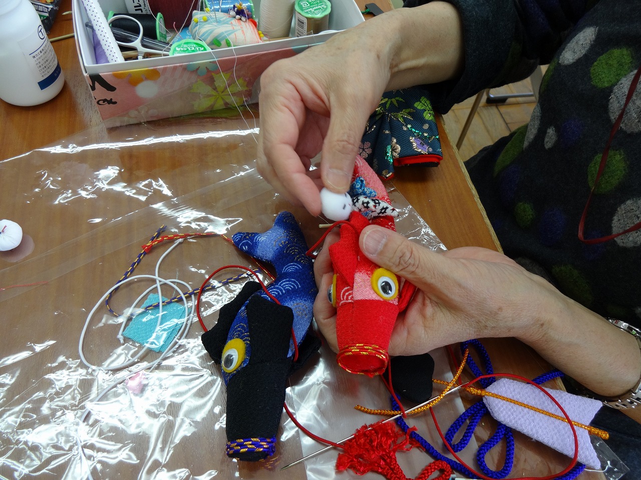 飾り方、楽しみ方はさまざまですが、見ているだけで幸せな気持ちになれるつるし飾り。そんな魅力にはまった方々が、3回にわたり端午の飾りを作りました。