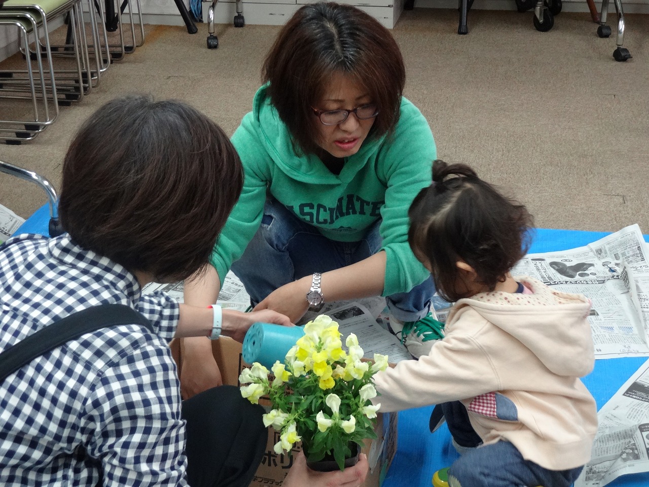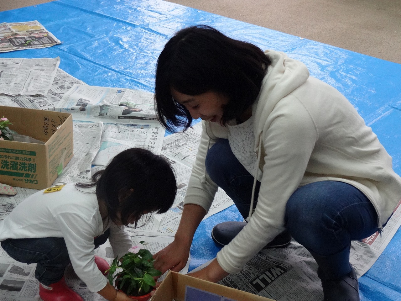 あいにくの天気で、外のプランターに植えることはできませんでしたが、鉢植えをして持ち帰りました。