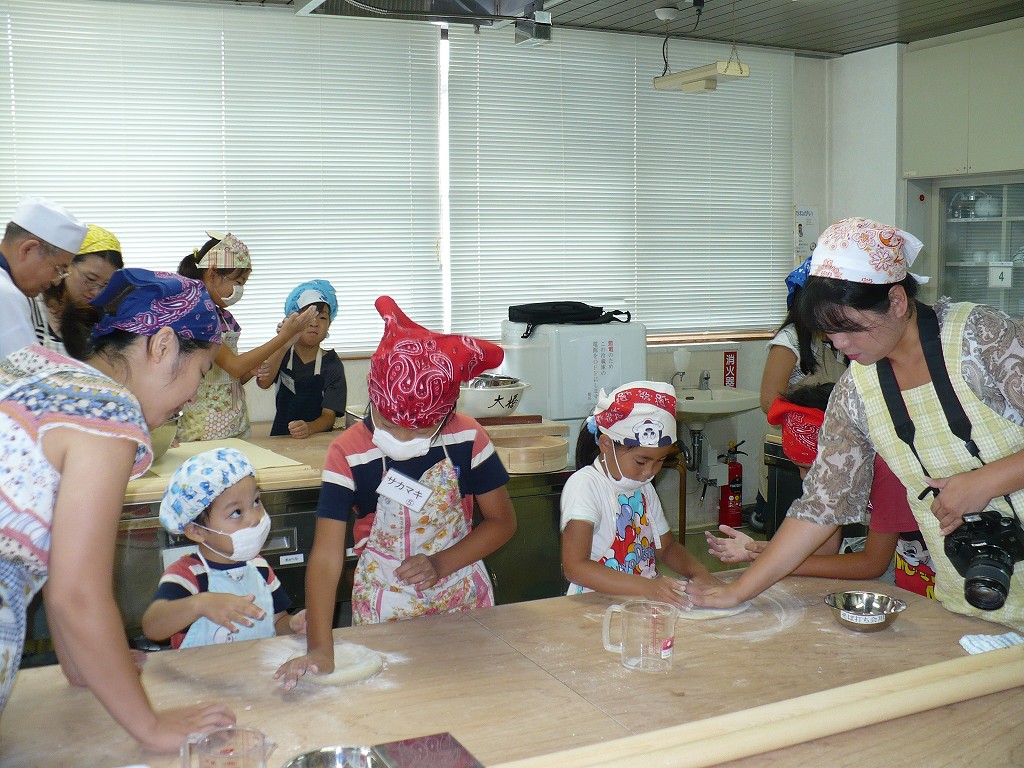 大好評につき急遽午前と午後の2回開催しました。 弟さんや妹さん、お母さんもいっしょになって真剣にがんばりました。 自分で打ったおそばの味はまた格別、先生方に感謝です。