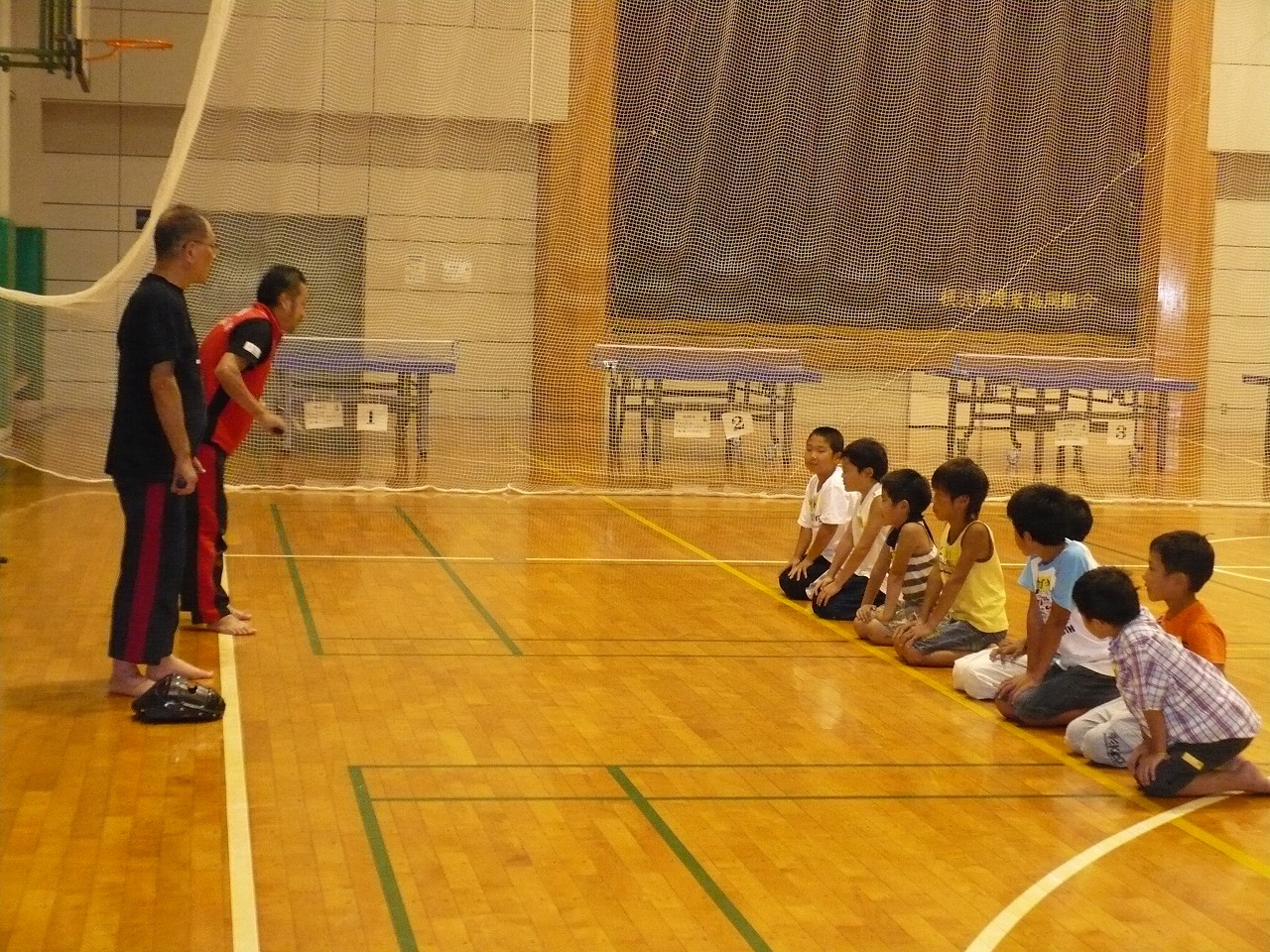 礼で始まり礼で終わる。 武道の本の少しを子供たちは学びました。 大きな声を出して、キリッ・・とした顔でした。 最後は、モップかけもみんなできちんとやってくれました。