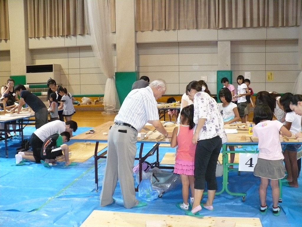 好評につき20組まで受付ました。 地元の材木店さんの先生たちが一生懸命指導してくださいました。 最初はおっかなびっくりだった子供たちも 最後にはりっぱに工具を使いこなしていました。 おとうさんのほうがのめりこんだかも知れません。