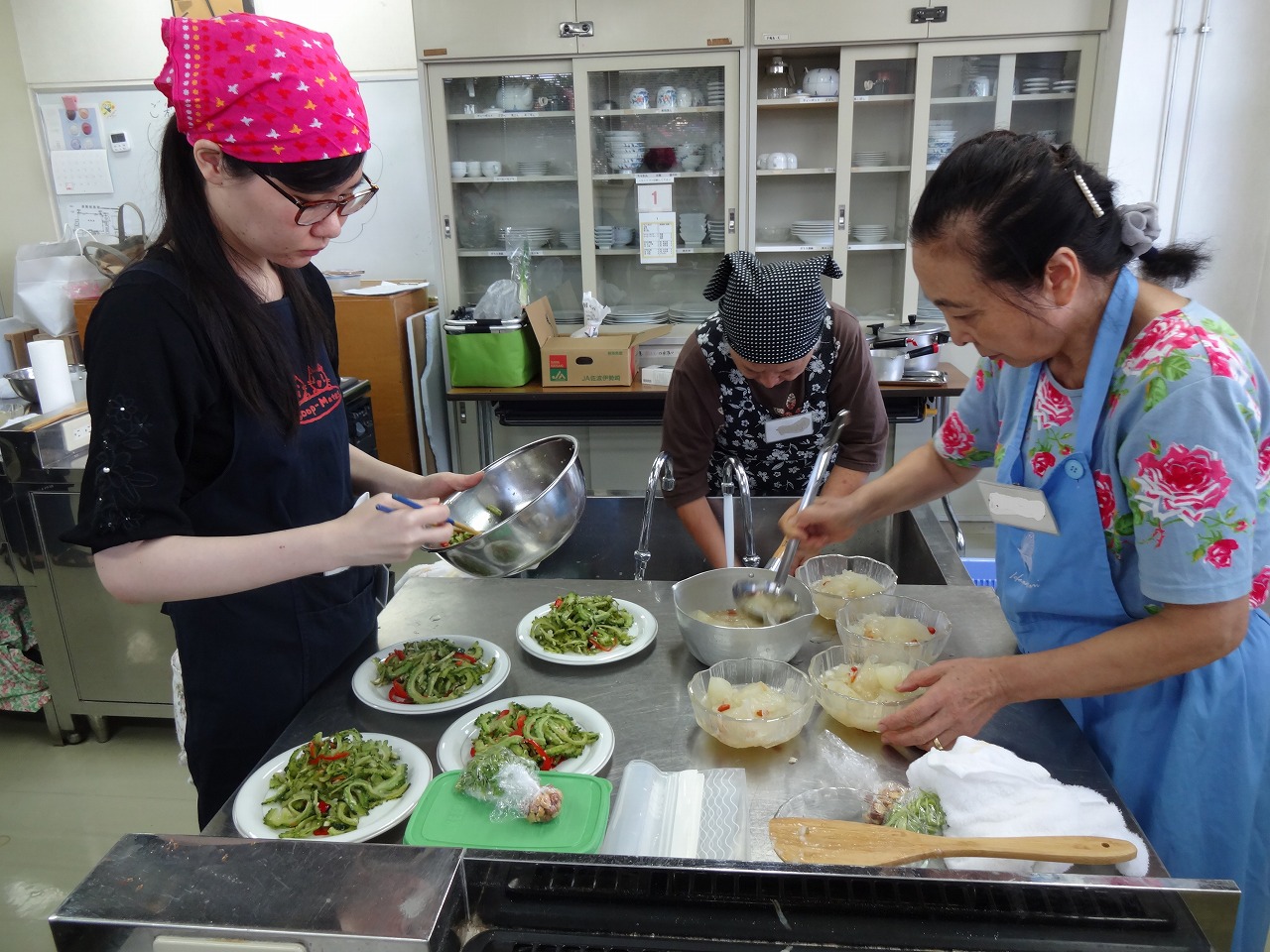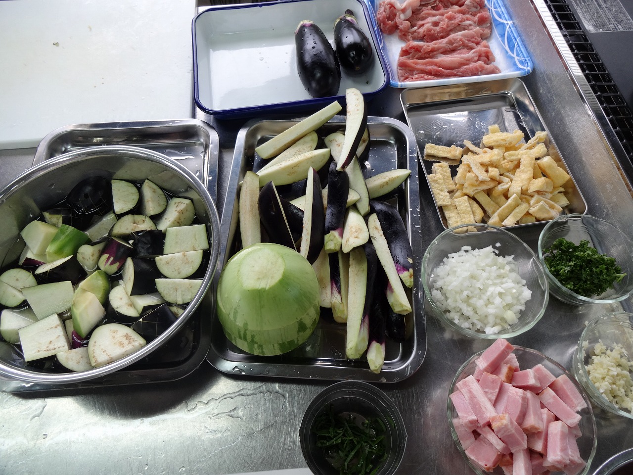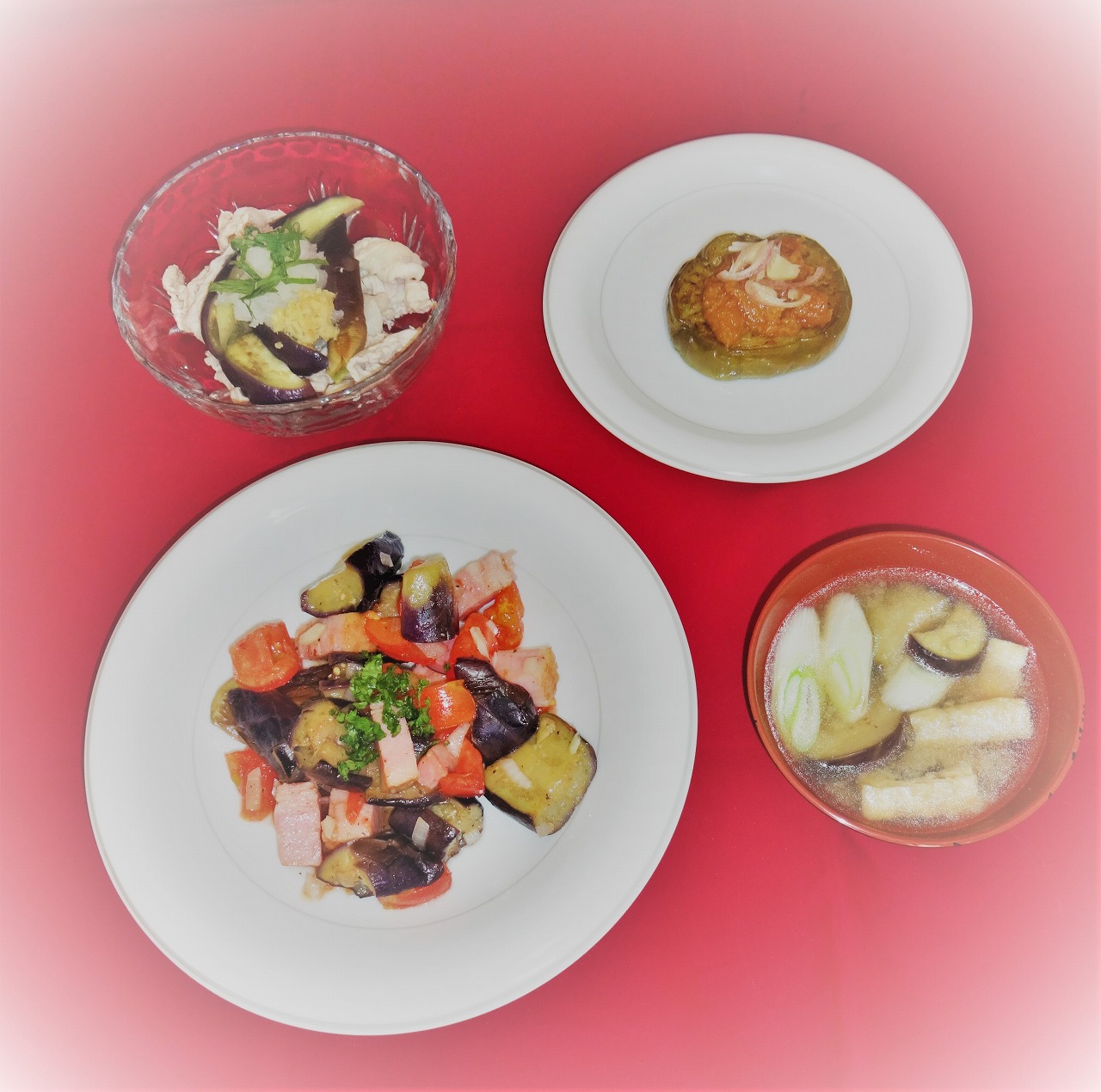 今回のテーマは、 「 季節の野菜レシピ ~なす~ 」 〇ナスとベーコンのトマト煮 〇ナスと薄切豚肉のおろし和え 〇ナス田楽 〇ナスの味噌汁 の4品を作りました。 どのナス料理も、夏バテ解消にバッチリの料理でした。 今回、いつもより参加者が少なく、寂しい開催となりました。 次回からは、多数の参加をお待ち申し上げます。