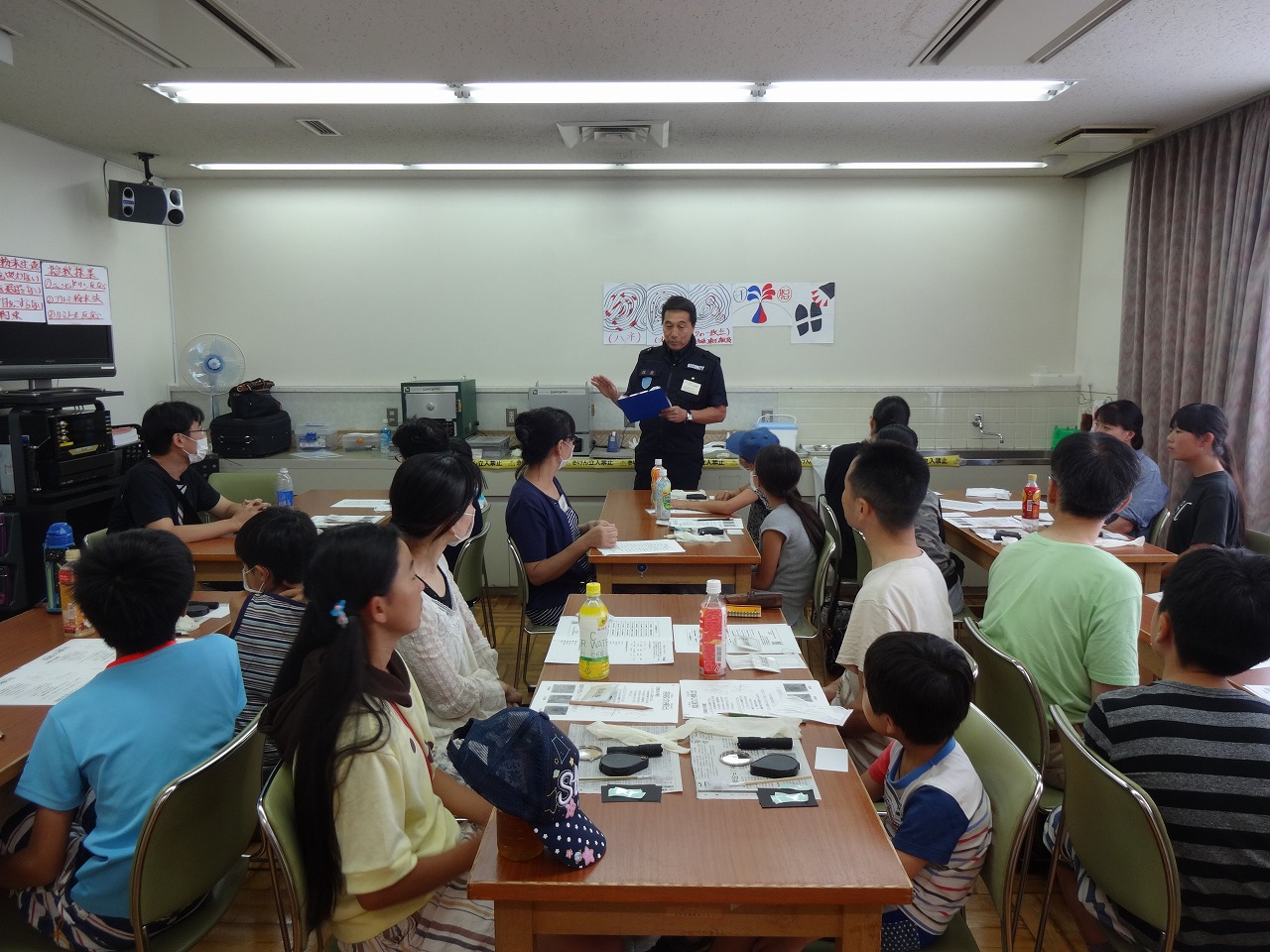 現在の犯罪捜査上、科学の重要性はとても大きいですが、その中でも基本的な指紋検出法、血液反応の実験をしました。 先生からは実際の捜査の仕方や、防犯に関しての貴重なお話などがあり、特に暗室にした部屋で血液反応の青い光が確認できた時は驚きの声があがりました。 「なぜ?」「どうして?」が『かがく』の入り口、ここからそれぞれの旅が始まってくれることを楽しみにしています!