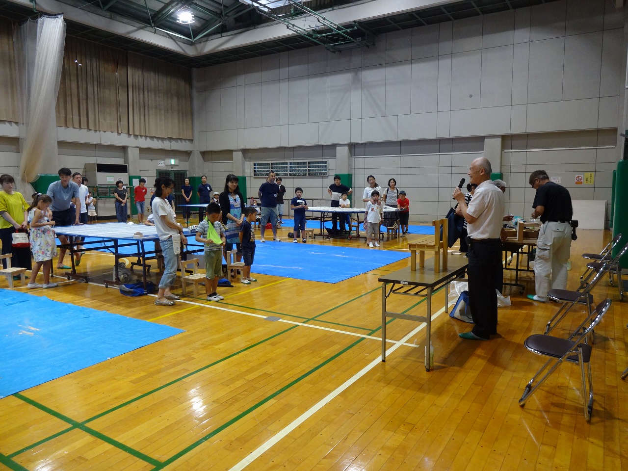 毎年、川原材木店様ご協力のもと開催されています親子工作教室、今年も多くの参加がありました。 親子で手を取り合い、慣れない工具の取り扱いを教えてもらいながら、職人技も伝授されて綺麗に出来上がっていくキッズチェアー。 体育室には賑やかな金槌の音が響きわたりました! 「来年も来るね!」と笑顔いっぱい、無事終了しました。