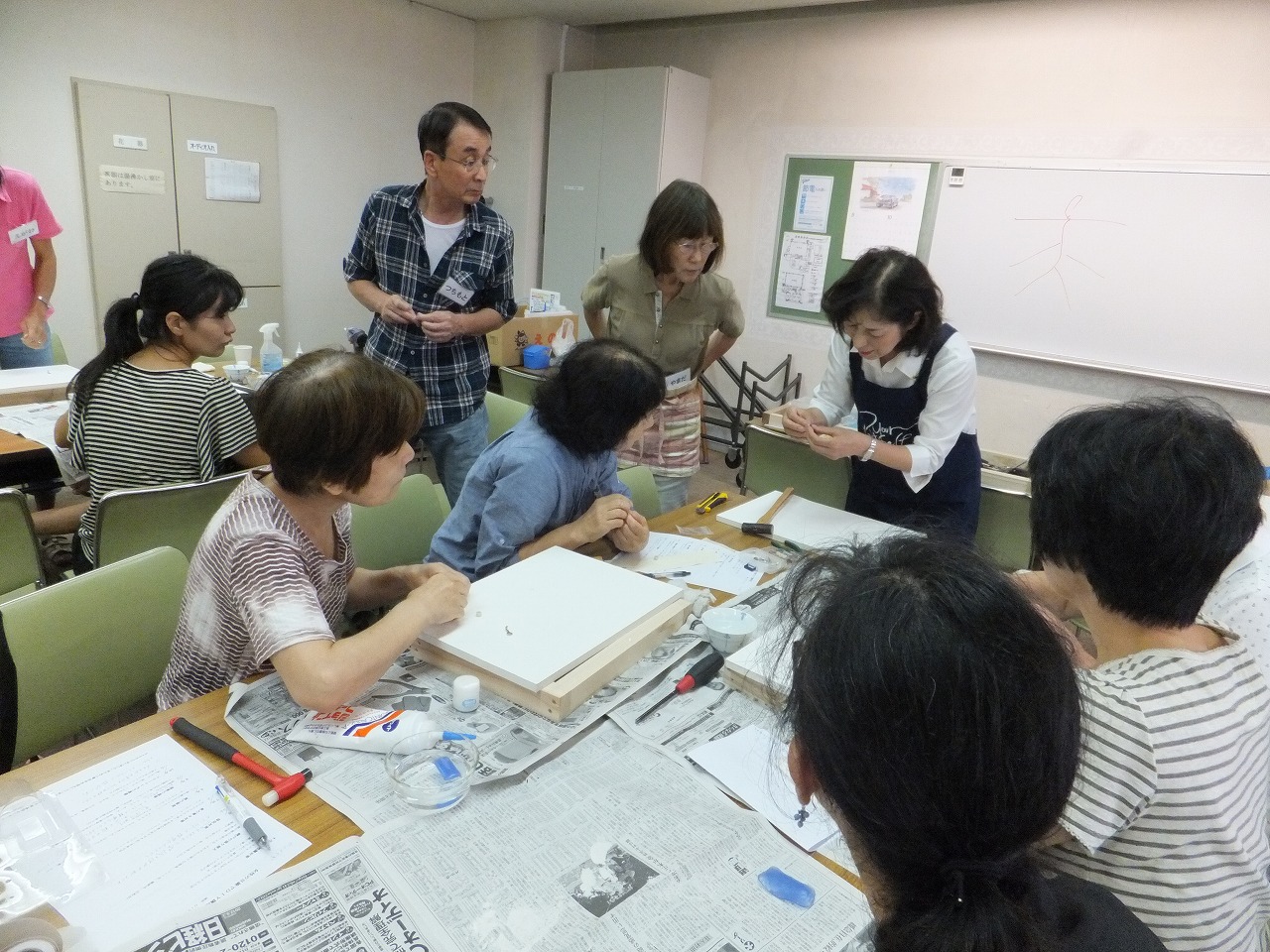 模型を使って、はがれやキズ、ピン穴の補修を実践しました。 補修箇所や場合に応じた方法、道具の選び方、コツなどを知ることで、難しいと思っていたことが簡単にできることがわかりました。 やる気が出ました!と参加者の声。