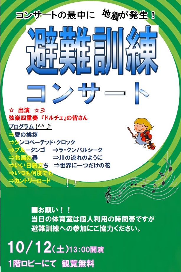 第2回避難訓練コンサート開催のお知らせ (^^♪