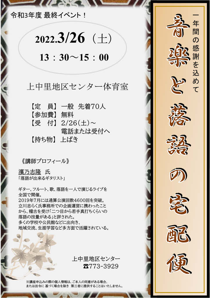 お知らせ:1年間の感謝を込めて『音楽と落語の宅配便』