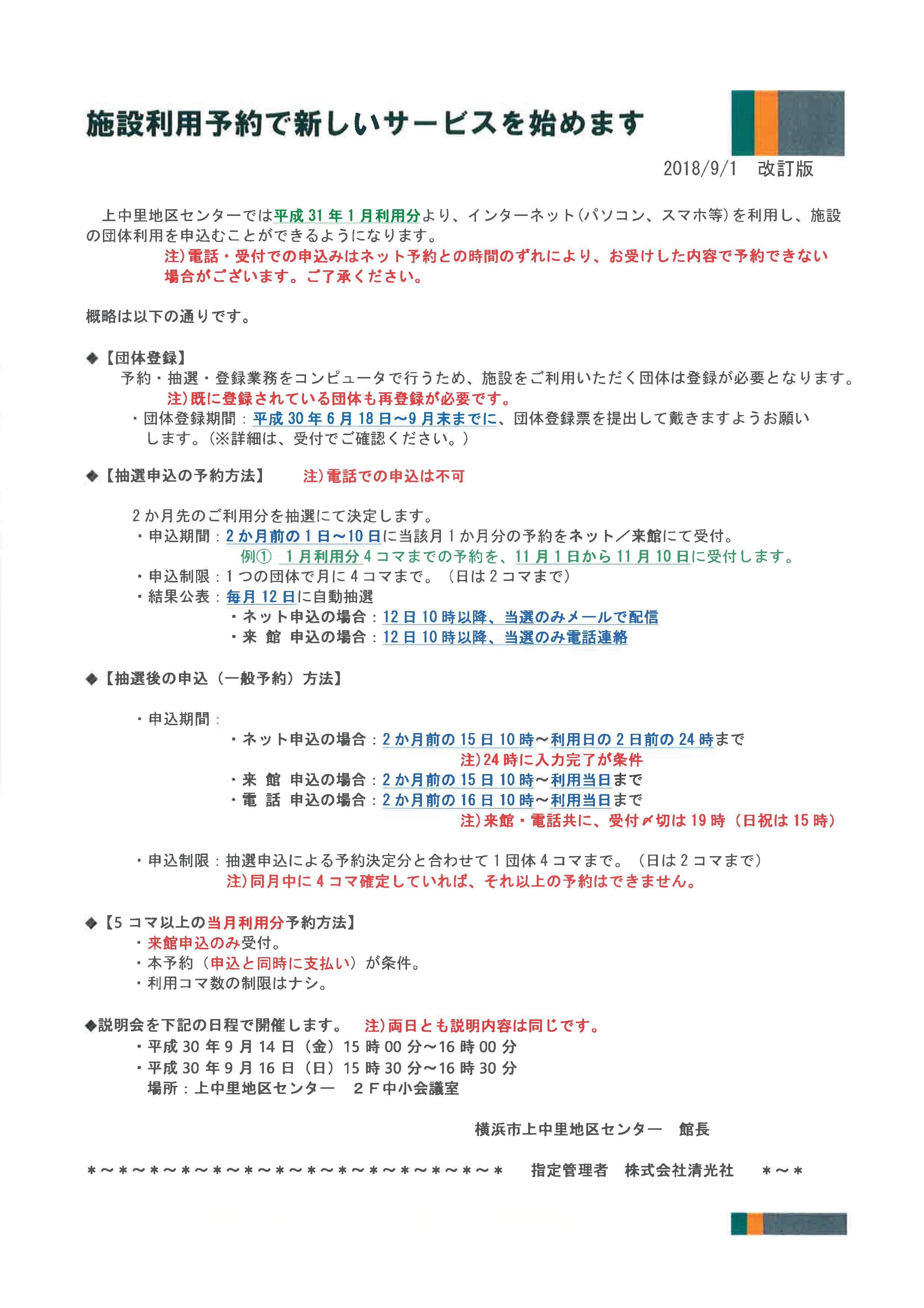 上中里地区センターでは、平成30年11月(平成31年1月利用分)の予約申込みから、インターネット(パソコン、スマホ等)を利用し、施設の団体利用を申込むことができるようになります。