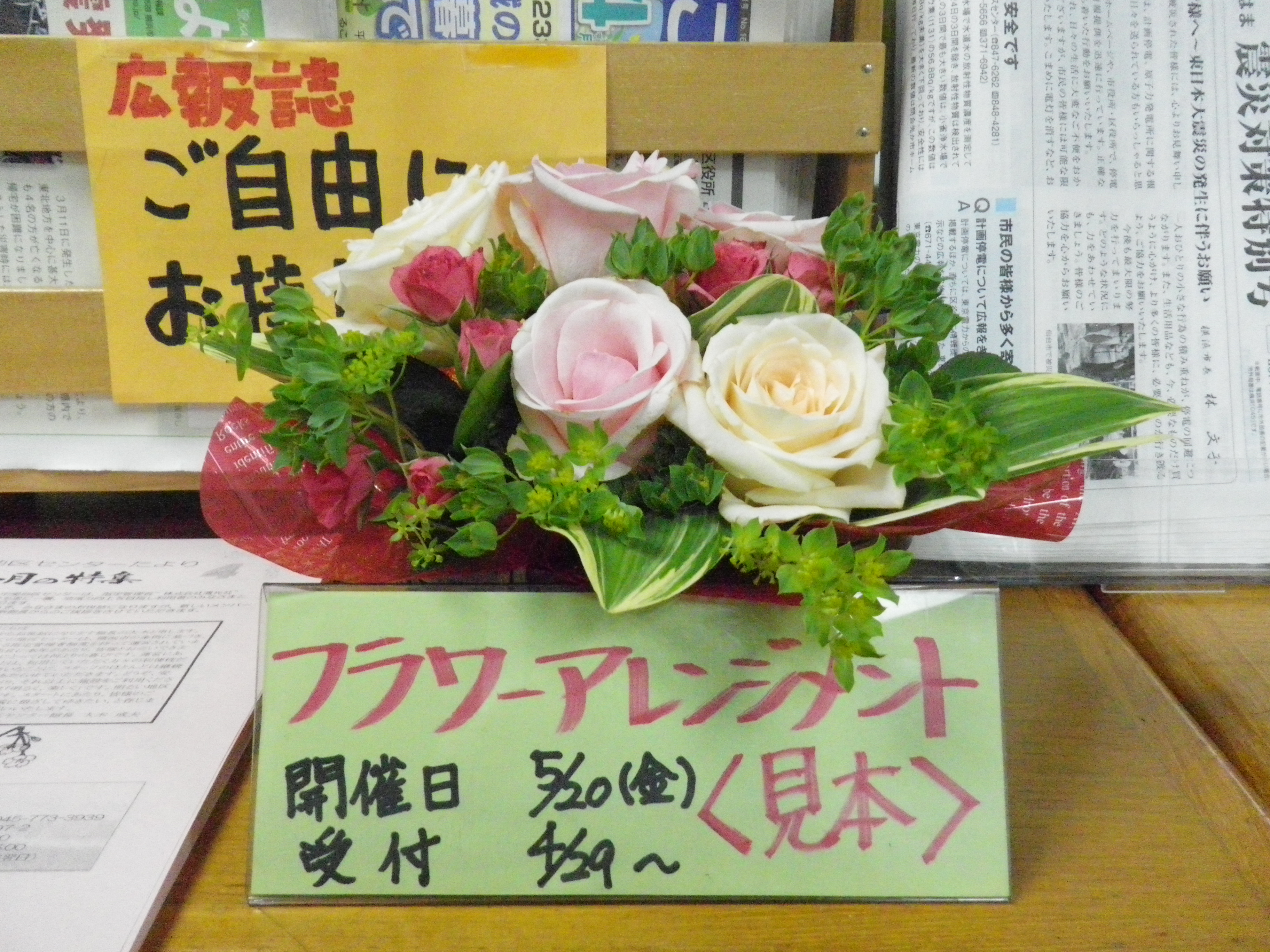 フラワーアレンジメントの見本が展示されています。