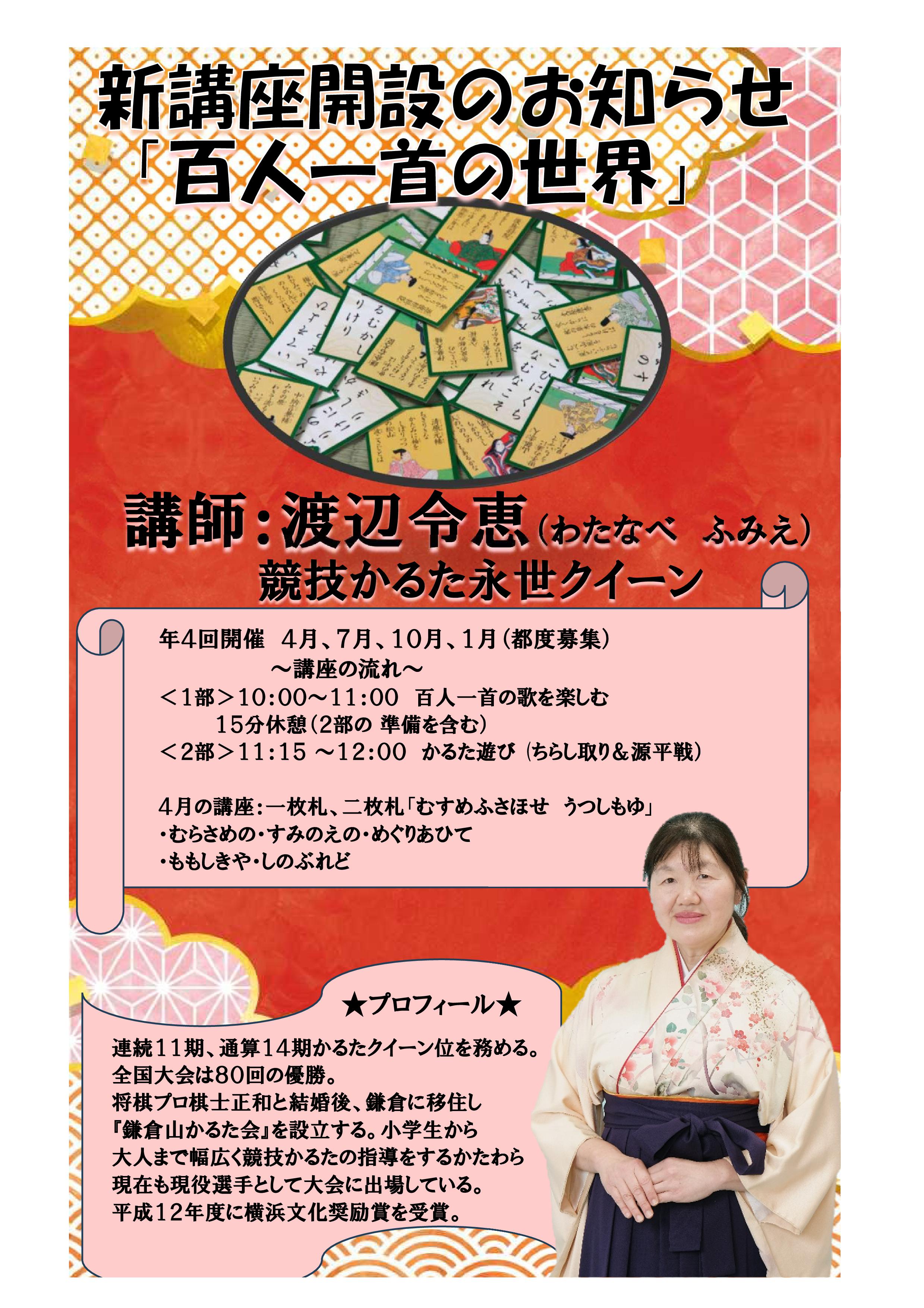 4月の講座募集の詳細につきましては3月号に掲載されます。。